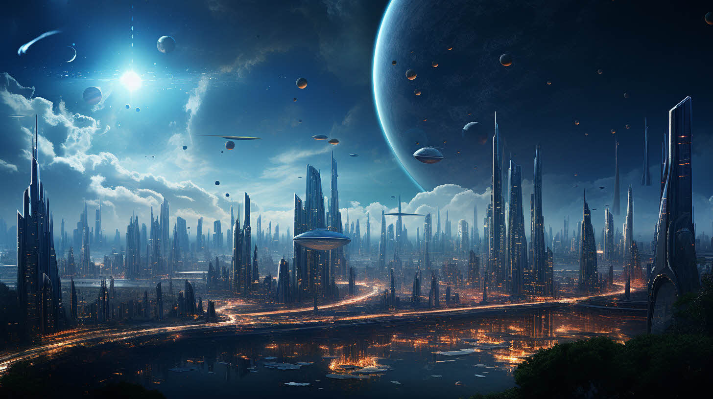 안녕하세요. 너드곰입니다. 이번 포스팅에서는 미래 도시에 하늘은 초승달 아래 선명한 별들로 가득 차 있으며, 높은 초고층 건물들 사이로 드론과 호버카가 날아다니고 있는 모습을 표현한 초고해상도 PC바탕화면입니다. 4가지 스타일이 있으니 마음에 드는 것으로 다운로드 받으세요.
